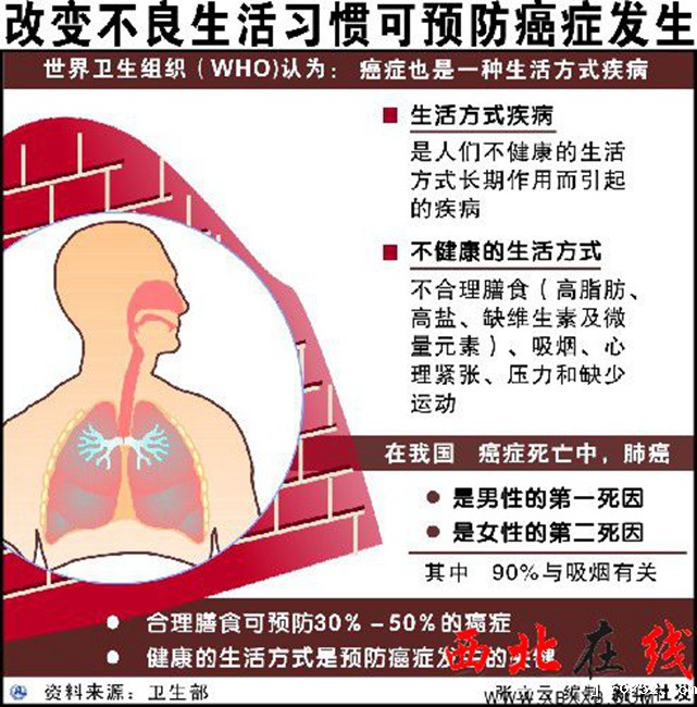 值得注意的是,在引发癌症的众多因素中,不良习惯占致癌因素的60%,例如吸烟、过量饮酒、情绪不稳、熬夜、不运动,饮食不规律,经常吃烧烤食品、熏制食品、油炸食品等等。吸烟是目前世界上最大的一项可预防致癌因素,控制吸烟可以减少23%-25%癌症相关死亡。而因饮食不规律、缺少运动等导致的肥胖未来10年内,或将超过吸烟成为第一大致癌因素。60岁以上的女性,标准体重每增加10公斤,乳腺癌的发病就要增加60%的危险。有鉴于此,重视生活方式的防范,就能让很多人远离癌症。