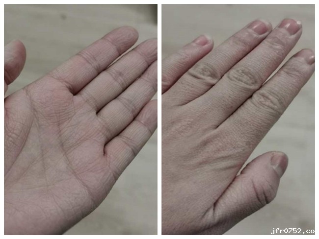 2月22日下夜班,脱掉厚厚的防护衣,汗水泡过的双手显示出与年龄极不相称地样子。展开难以解锁的手,管它呢,拼了,武汉加油!