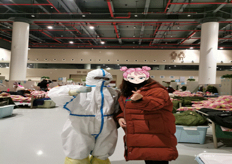 (亲爱的战友,真想看看你不戴口罩的样子,笑起来一定很美……)