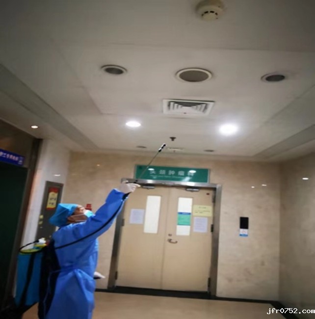(春节期间,“消杀”人员不足,为保证工作质量和效率,后勤服务部负责人亲自带队开展消杀工作。)