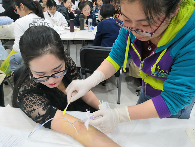 本次培训班由护理部副主任王雁主持开幕式。空军军医大学唐都医院、市静疗主任委员何华副主任护师以及护理部谢娟主任分别致辞。在两天的培训中,由西安市静疗主委唐都医院何华副主任护师,省静疗副主委交大二附院张瑞丽副主任护师、以及伟德官网下app官方网站的王雁副主任护师、唐红霞副主任护师、张惠副主任护师、邹春芳主管护师等具有丰富临床理论及实践经验的PICC置管和维护专家就PICC维护的全流程、PICC常见并发症的防治策略等内容进行了细致精彩的演讲,孙飞护士长、常利主管护师进行了PICC操作维护讲解和演示,并通过“依静制动”图片案例教学、获奖静疗情景剧展示等多种形式进行培训,寓教于乐。在PICC操作工作坊环节,担任桌长的我院30位护士长和静疗骨干护士对学员分别进行了一对一的手把手的指导和考核,达到了巩固的目的。培训结束时,由唐红霞、邹春芳、张惠三位护士长对学员的成果进行了一一点评。参加培训的学员纷纷表示感触良多,受益匪浅。