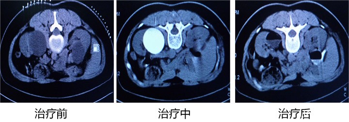 女,49岁,双肾多发囊肿术后复发CT引导聚桂醇硬化治疗