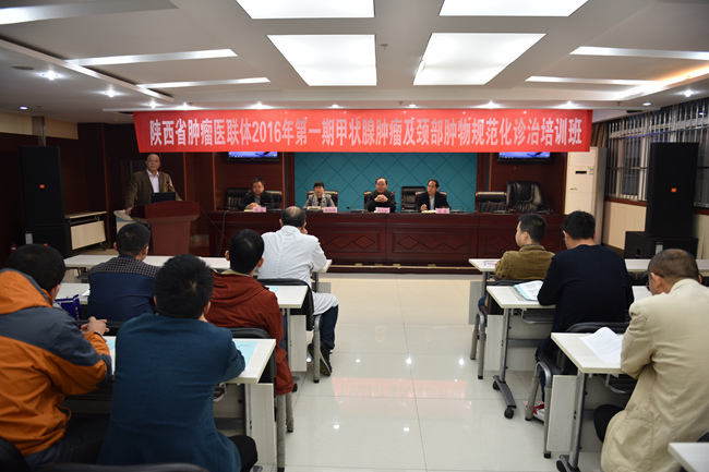 为进一步加强陕西省基层甲状腺肿瘤及颈部肿瘤专科医师队伍的建设,提高我省基层医院甲状腺肿瘤及颈部肿瘤诊疗整体水平,2016年10月23日-28日,以陕西省肿瘤医联体为平台的首期甲状腺肿瘤及颈部肿瘤规范化诊疗培训班在我院圆满举办。