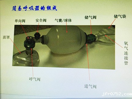 (所需用物:简易呼吸气囊、氧气连接管、模肺)