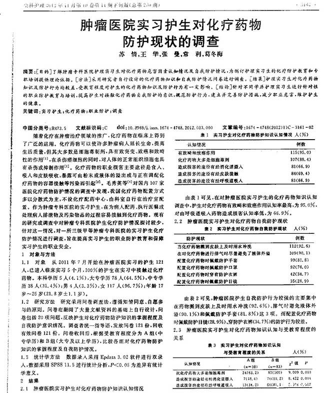 肿瘤医院实习护士对化疗药物防护现状的调查