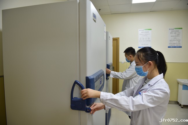 据病理科主任袁勇介绍,“肿瘤患者手术标本或体液取样后暂存入液氮罐,最终将标本提取核酸,放入冻存管后在-80℃的冰柜里冻存。在这样的超低温环境下,样本可以保存5至10年。”建立肿瘤生物样本库可防止特发性肿瘤的丰富的病例资料的流失,通过对大量病例资料的整理和研究,利于在地方性肿瘤研究上取得进展,有利于恶性肿瘤的早诊早治;同时,可有效避免所收集的肿瘤样本过早失去生物活性,保证研究结果的准确率。