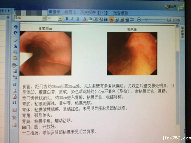 同时,一可疑食道早癌患者已准备就绪,李崇沧老师执镜,分别在白光及蓝光染色下仔细辨别病变部位,护士配合活检孔置染色管,卢格氏碘染色,碘不着色部位取检,患者配合良好,检查顺利完成。下午1点多结束上午工作,四个疲惫的人收拾下班。