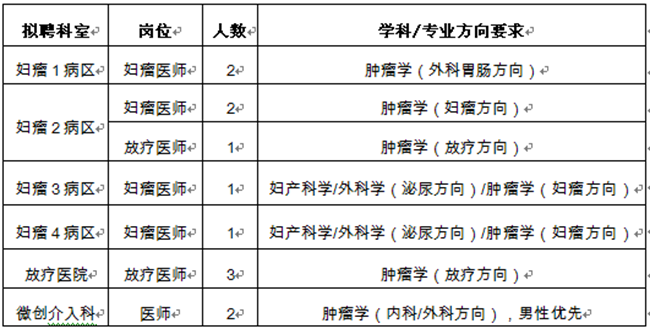 医院编制床位850张。按“四院一平台”学科发展模式,设专科病院4个,临床科室和病区21个,其中妇科肿瘤、肿瘤放疗和头颈肿瘤外科为陕西省优势特色专科,妇科肿瘤病院、乳腺肿瘤病院、放射治疗医院分别为陕西省妇科肿瘤诊疗中心、乳腺病诊疗中心和精确放射治疗中心。2016年经省编办、省人社厅和省卫计委审核批准,面向社会公开招聘博士学位优秀青年人才12名,有关事项公告如下: