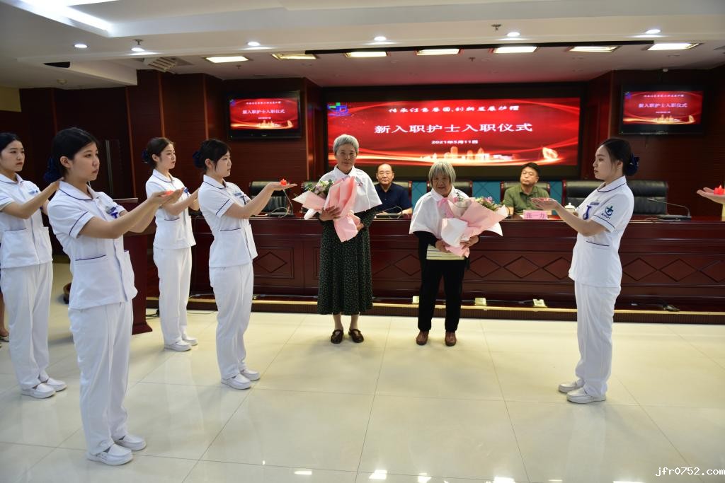 会上宣布男护士工作小组正式成立,男护士代表表演了“我骄傲,我是‘男’丁格尔”的诗朗诵。随后,援鄂护士以“疫路有我”为题,讲述了在湖北抗疫期间的亲历故事和心路历程,现场同事们深受感染。会议最后,由2名护理前辈为新入职护士代表举行神圣的传灯授帽仪式,同时在护理部主任的带领下,新入职护士庄严诵读了南丁格尔誓言,深刻感受到白衣天使这份职业的崇高和光荣。