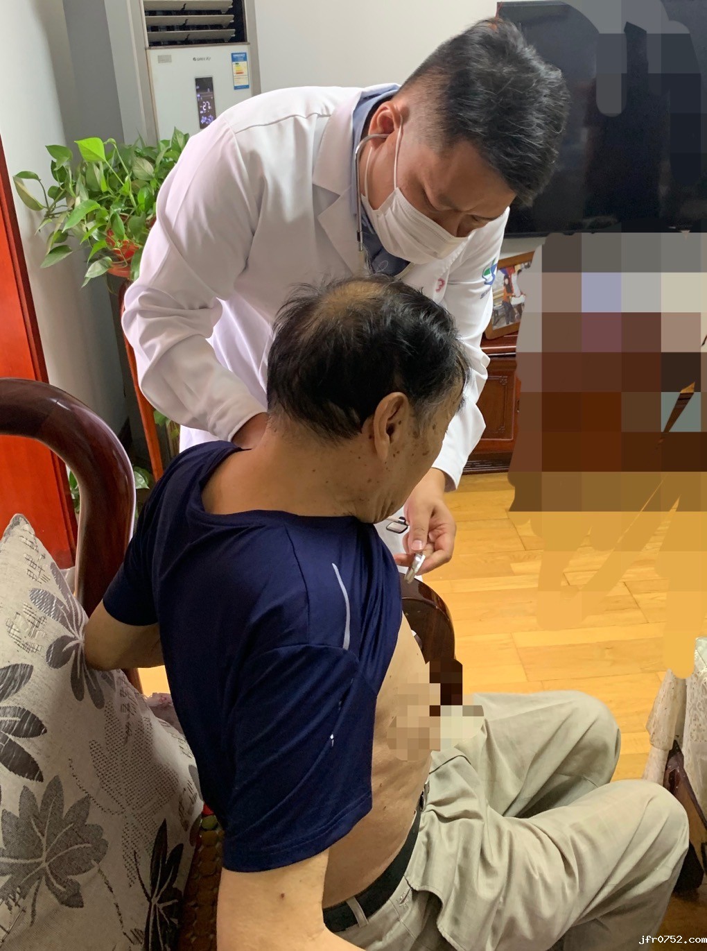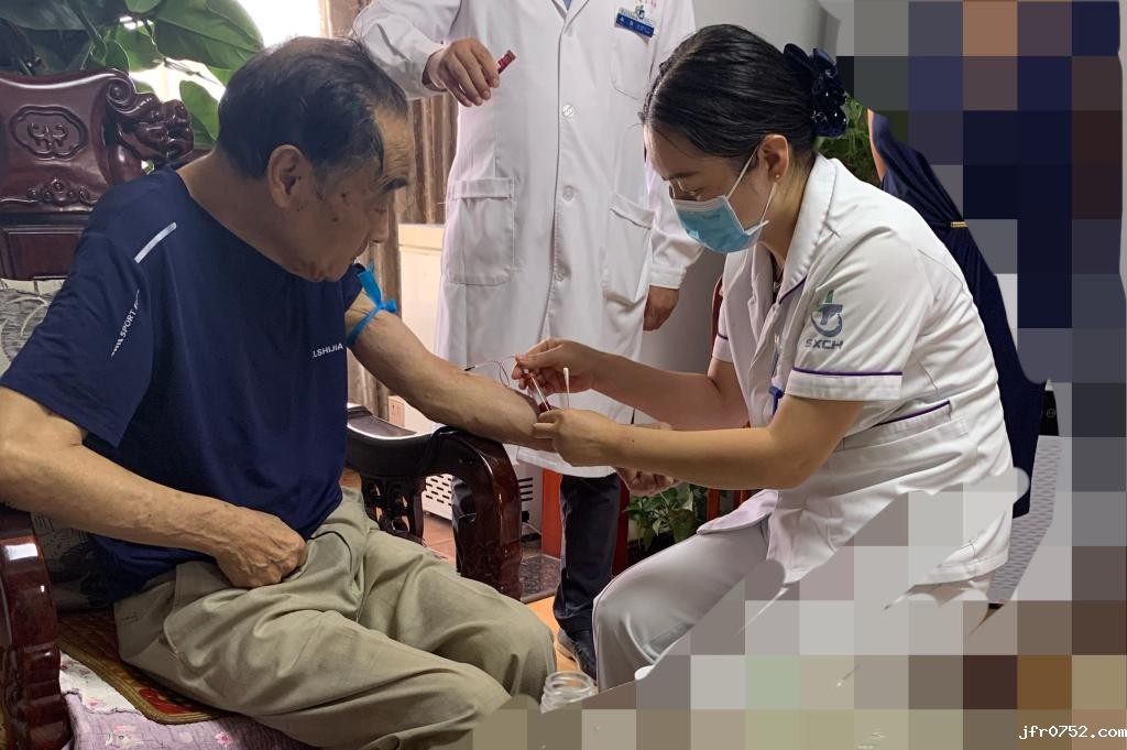 80多岁的邱老去年因肺癌,慕名找到了内科病院一病区的赵征主任,经过一年多的规范治疗,癌细胞得到有效控制,病情稳定,遂出院在家休养。为了更好的了解邱老出院后的饮食、用药及恢复情况,8月8日上午,内科病院一病区主任赵征、护士长张彧及责任护士专程来到邱老家中,给邱老测血压,检查肺部,耐心询问平时用药情况及日常饮食和锻炼情况,对邱老家居环境、照料人员、饮食、营养、自理能力等方面进行了综合评估,并给予有针对性的指导和建议。