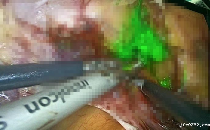 8月1日上午,在王女士的手术中,妇瘤病院李东红院长、妇二病区田小飞主任团队使用吲哚菁绿成功显影了“前哨”淋巴结并完整切除后,送术中快速病理,与病理科沟通进行前哨淋巴结冰冻。非常幸运,王女士左、右两侧盆腔前哨淋巴结都没有肿瘤转移,从而避免了创伤较大的系统性淋巴结清扫。后续顺利完成了筋膜外全子宫+双附件切除手术治疗。