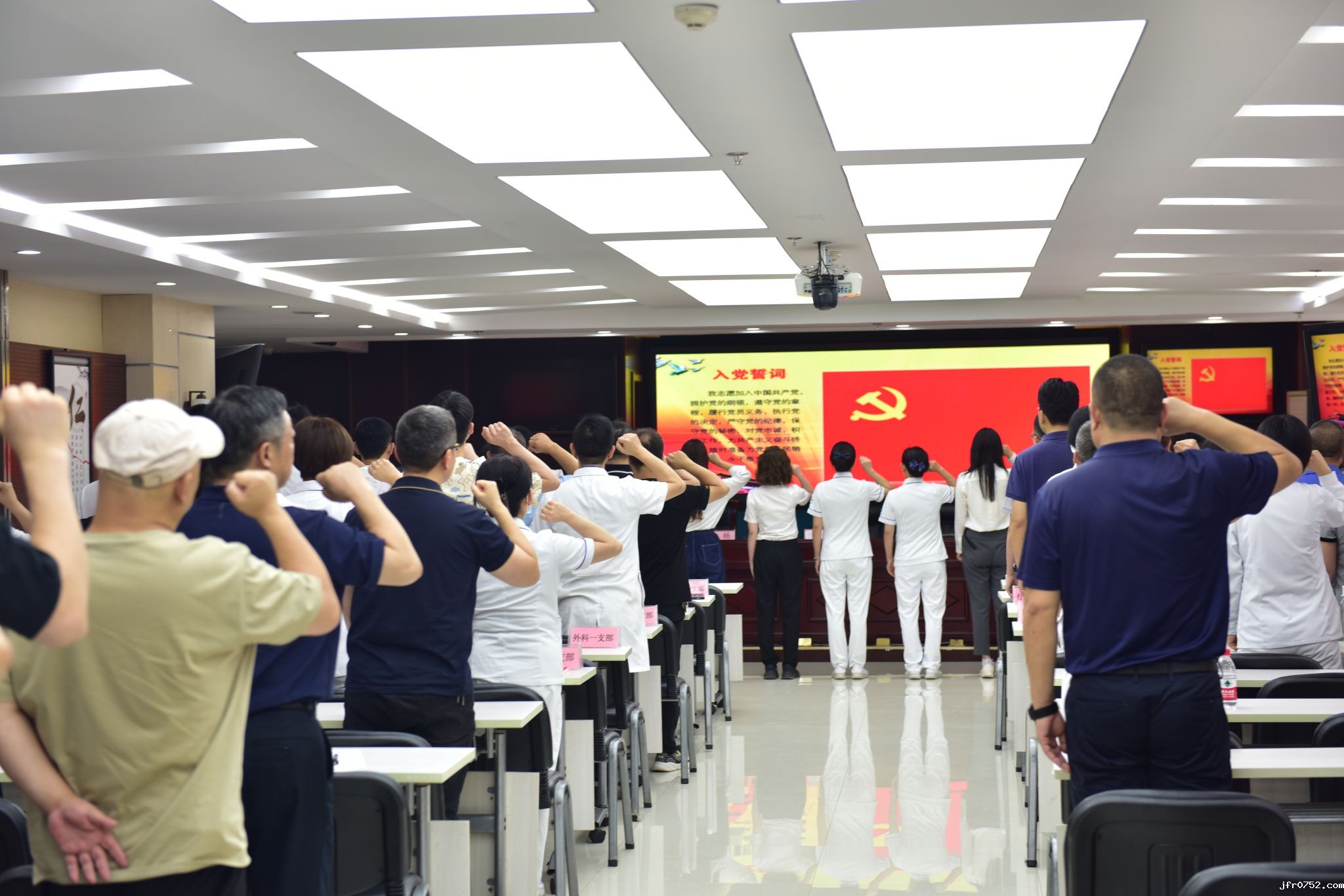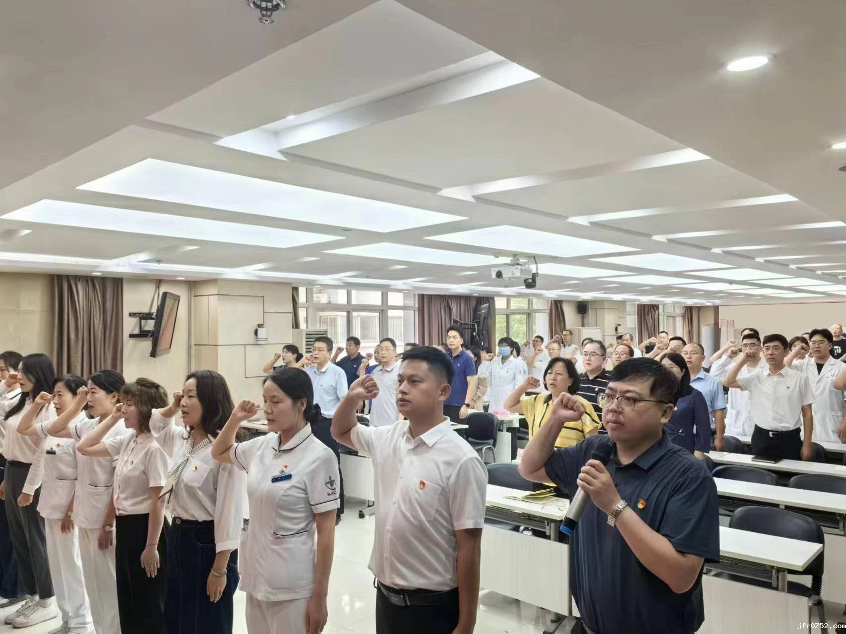 “我志愿加入中国共产党,拥护党的纲领,遵守党的章程……随时准备为党和人民牺牲一切,永不叛党。”在党委书记李杨的带领下,党员和新发展党员同志面向党旗,高举右拳,庄严宣誓,表达遵守党纪、党规,履行党员义务、为共产主义事业奋斗终身的决心。