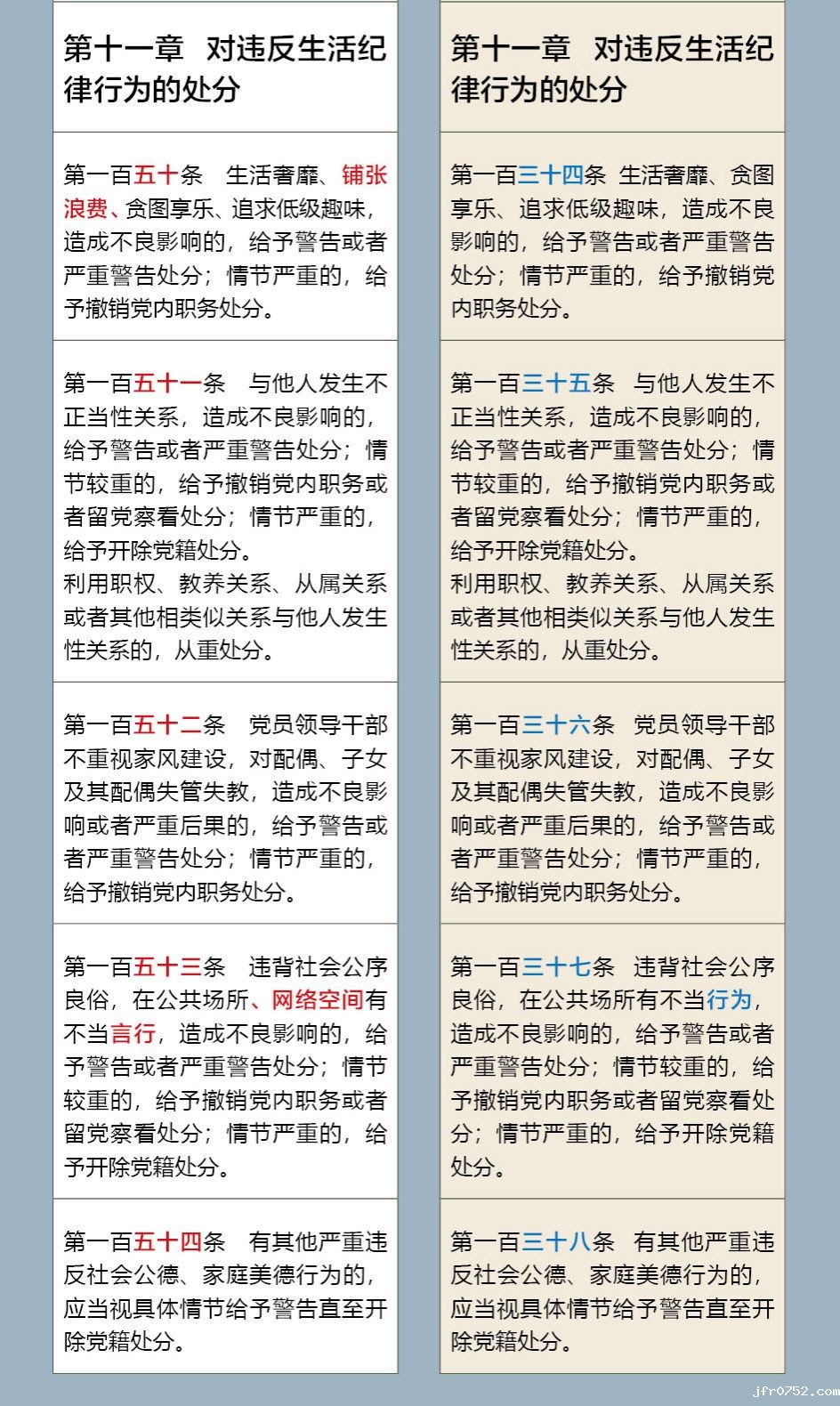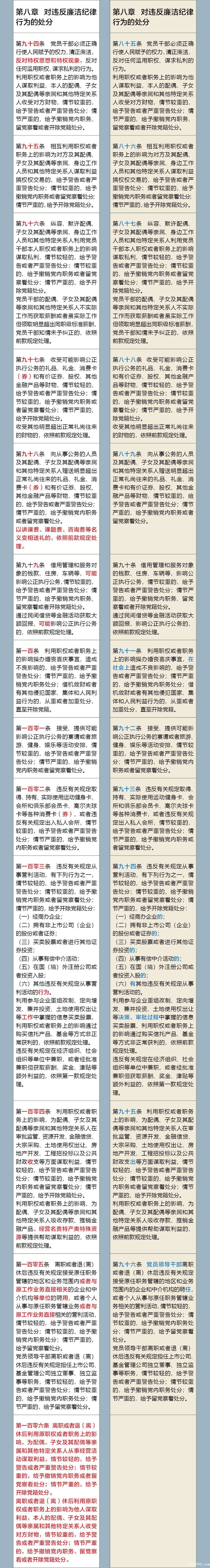 《中国共产党纪律处分条例》修订前后对照表(第二、三编)