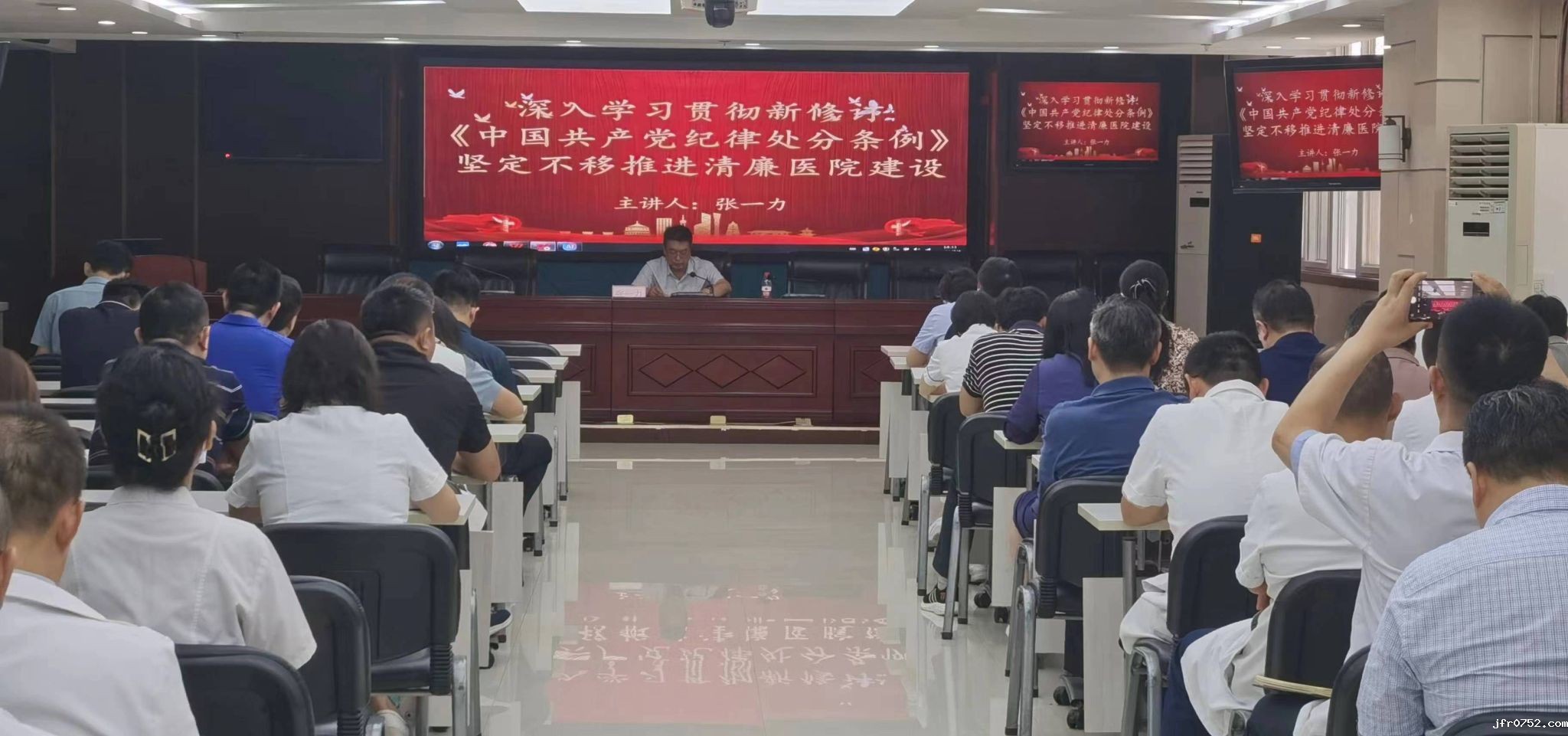 7月4日下午,伟德官网下app官方网站召开专题党课,深入学习贯彻新修订的《中国共产党纪律处分条例》,推动全面从严治党向纵深发展。院党委副书记、院长张一力作题为《深入学习贯彻新修订<中国共产党纪律处分条例>坚定不移推进清廉医院建设》的专题报告。