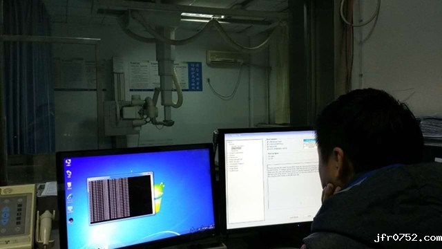 为保证服务器出故障的X光机能于第二日正常使用,放射科戴强和信息科海洋两位同志不辞辛苦,连夜奋战,成功排除故障。