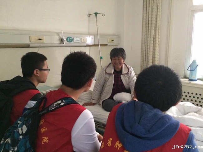 长安大学志愿者牺牲周末时间来我院陪同患者聊天,患者们纷纷表示和年轻人聊过天后,感觉心情放松多了,开心多了。(李月摄)